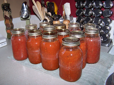 Our neighbor brought over a big bucket of tomatos (didn't get a pic of the tomatoes... darn, they were really pretty) for hubby helping him with his pump the other day... I was able to add them to some from my bff and can some Spaghetti Sauce. Since I didn't have any tomatoes on my little plants this year, I was afraid I wouldn't get any before the end of the season.